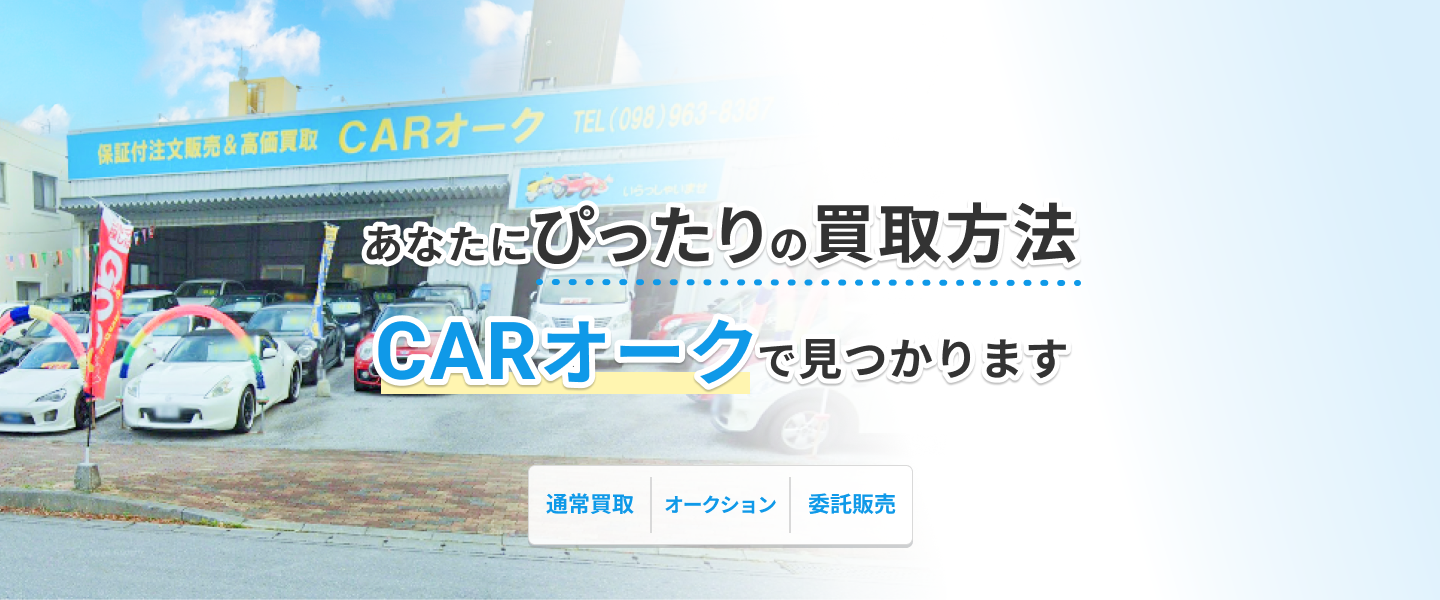 宜野湾市真栄原にあるCARオークでは、通常の買取の他にも業者オークション出品や委託販売など、お客様にあった方法での買取が可能です。